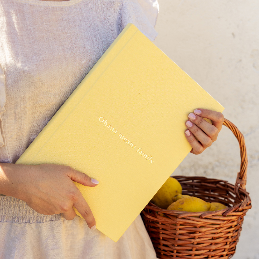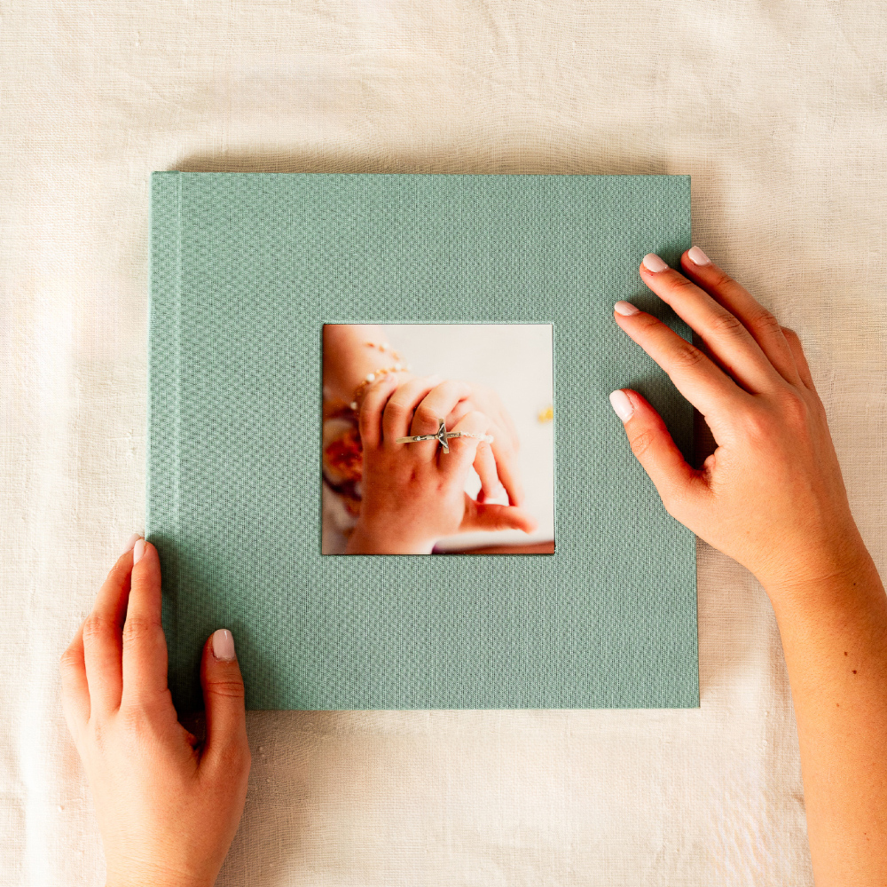 A Coleção Signature usa capas em tecido Buckram, um algodão de alta densidade conhecido pela sua excecional resistência e textura marcante. É um material feito para durar e para ser manuseado, garantindo que a beleza do seu álbum resiste ao tempo e ao toque.