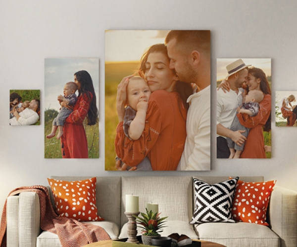 Temos sugestões que ficam bem em salas grandes e pequenas e a disposição dos quadros foi pensada de forma a permitir a junção de outros quadros no futuro, caso pretendas. Para que possas criar estes conjuntos de parede, disponibilizamos o download das imagens utilizadas. No caso das fotografias, o objetivo é criares com as fotografias da tua família.