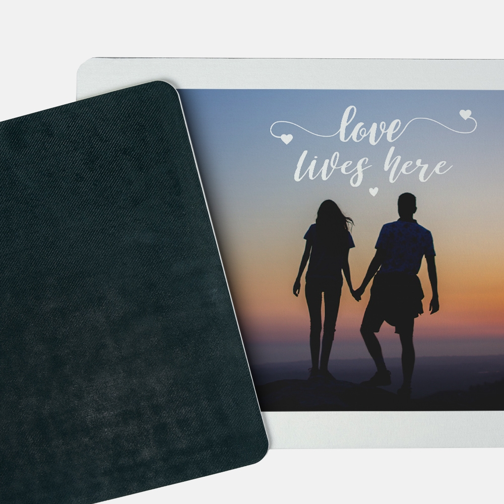 Tamanho 60x40 cm com personalização parcial num dos lados.